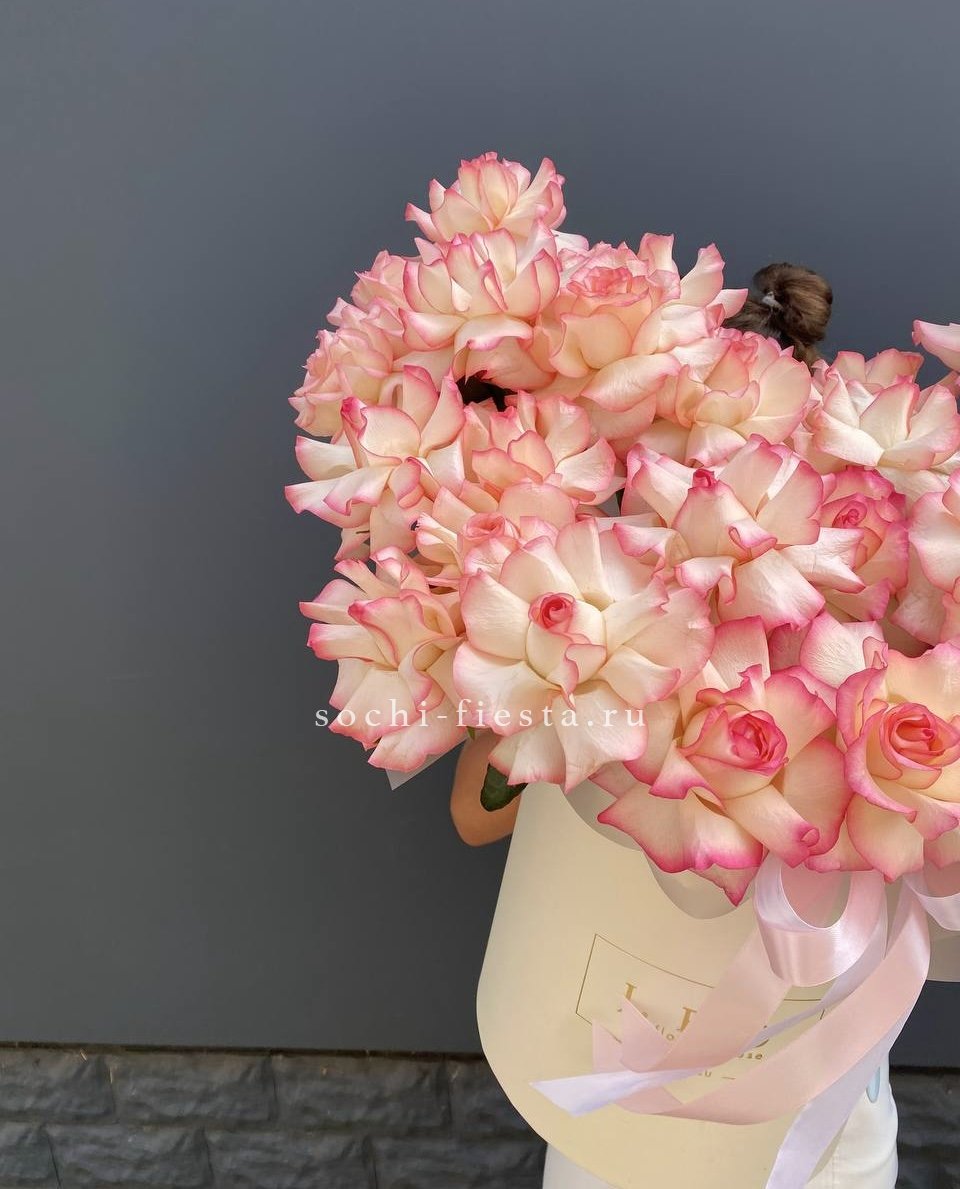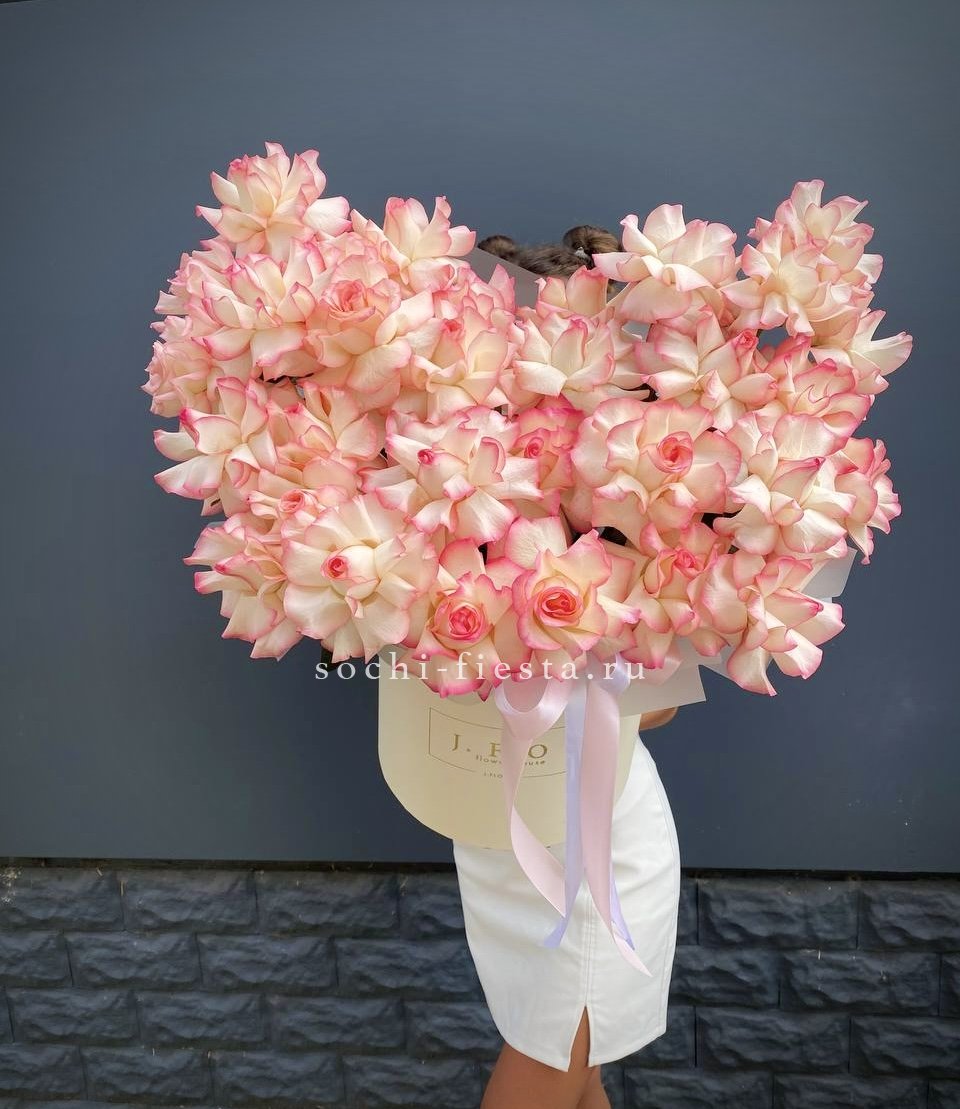 51 роза мадам ред в нежном оформлении