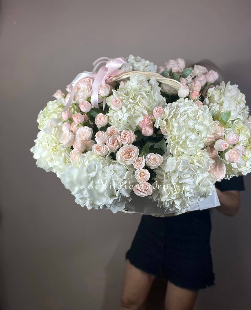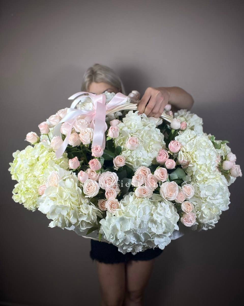 гортензия - 5 шт., лента, дизайнерская упаковка.