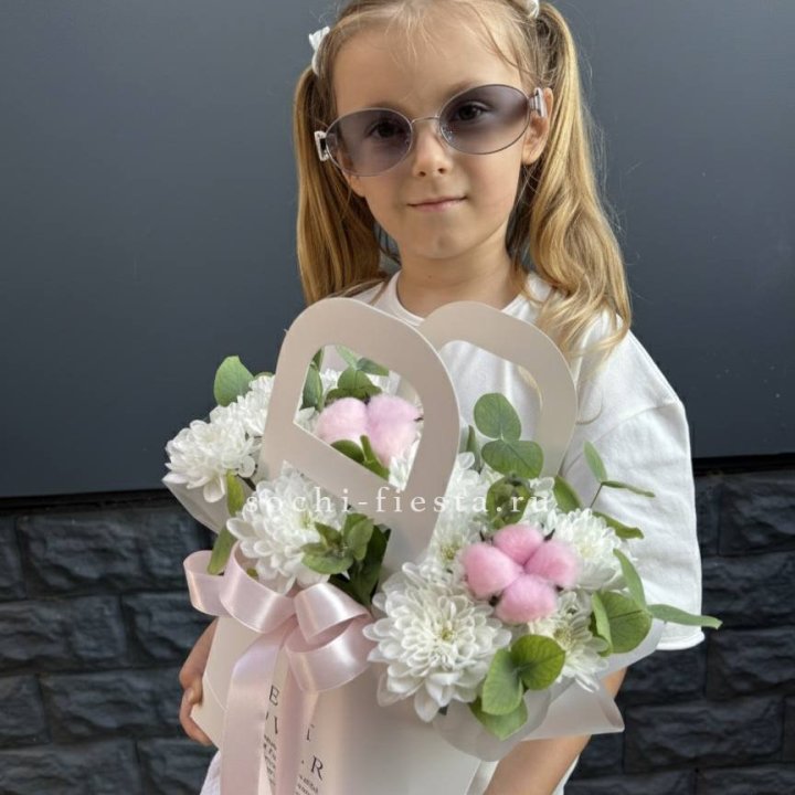 В сезон (весна и лето) ассортимент шире: пионы, ранункулюсы, тюльпаны местные и голландские, ромашки, гортензия. Круглый год — розы от 50 см стебель, кустовые хризантемы, альстромерия, гипсофила, эустома, гвоздики, эвкалипт для миксов.