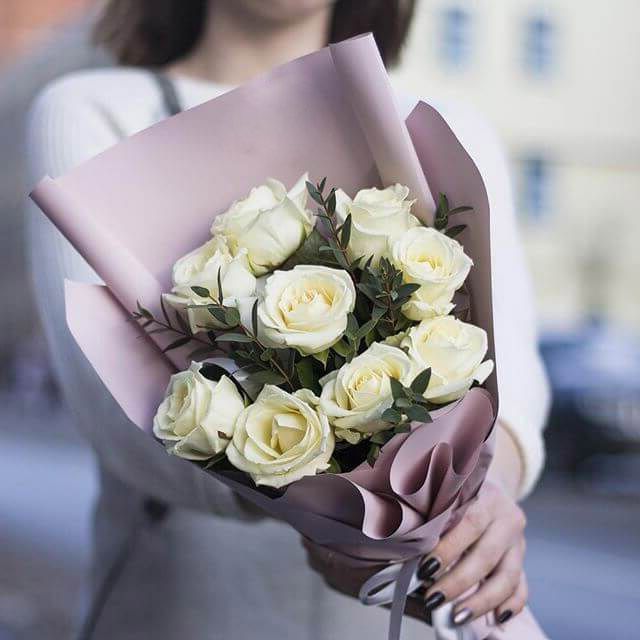 11 Белых французских роз "Вайт найс"
