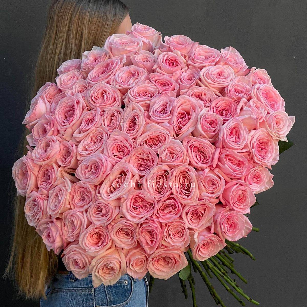 Сорт Lolita отличается насыщенным цветом и крупными бутонами с бархатистой текстурой лепестков. Пятьдесят пять стеблей формируют внушительную композицию с выраженным объемом. Букет выглядит как самостоятельный арт-объект.