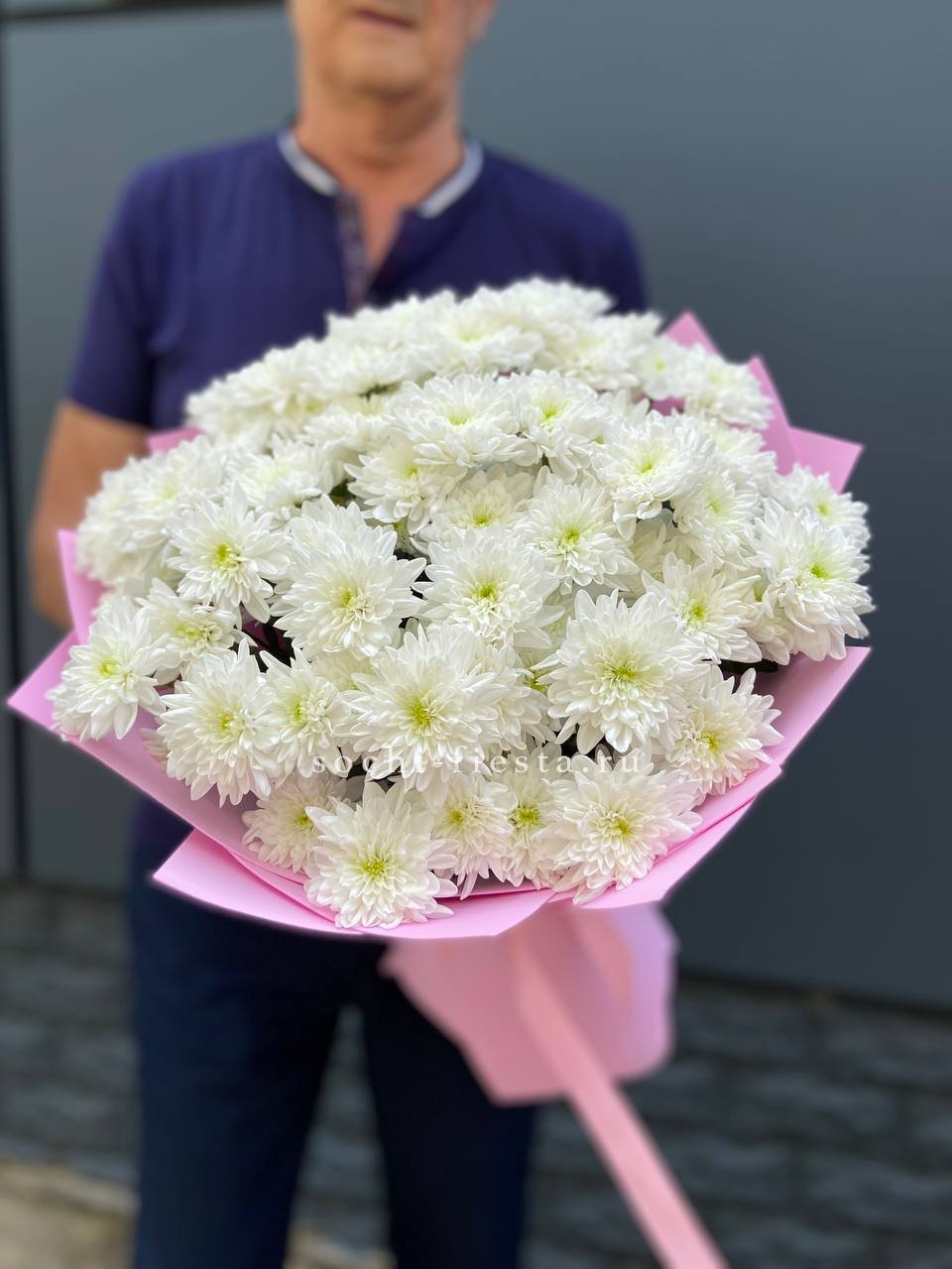 хризантема кустовая - 11 шт., лента, дизайнерская пленка.
