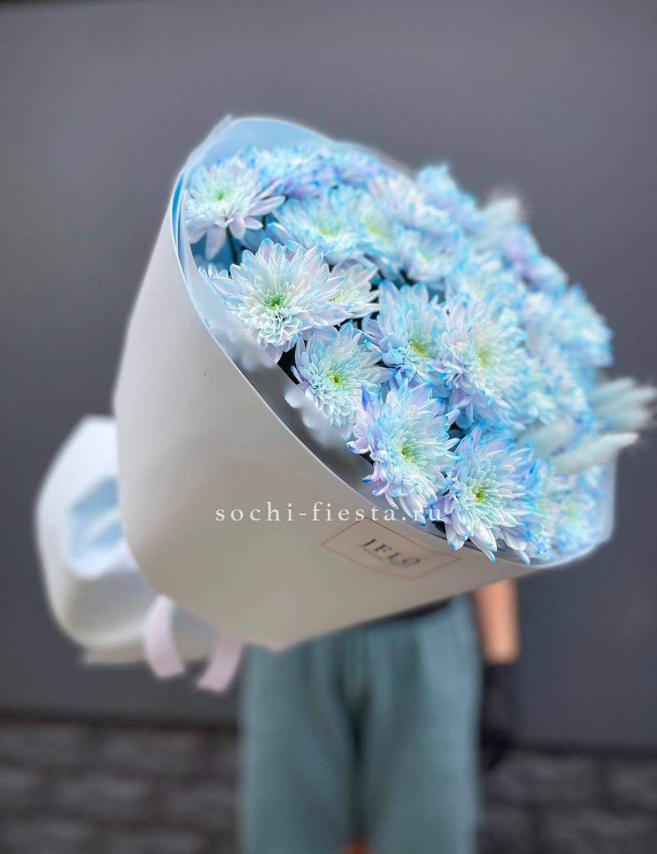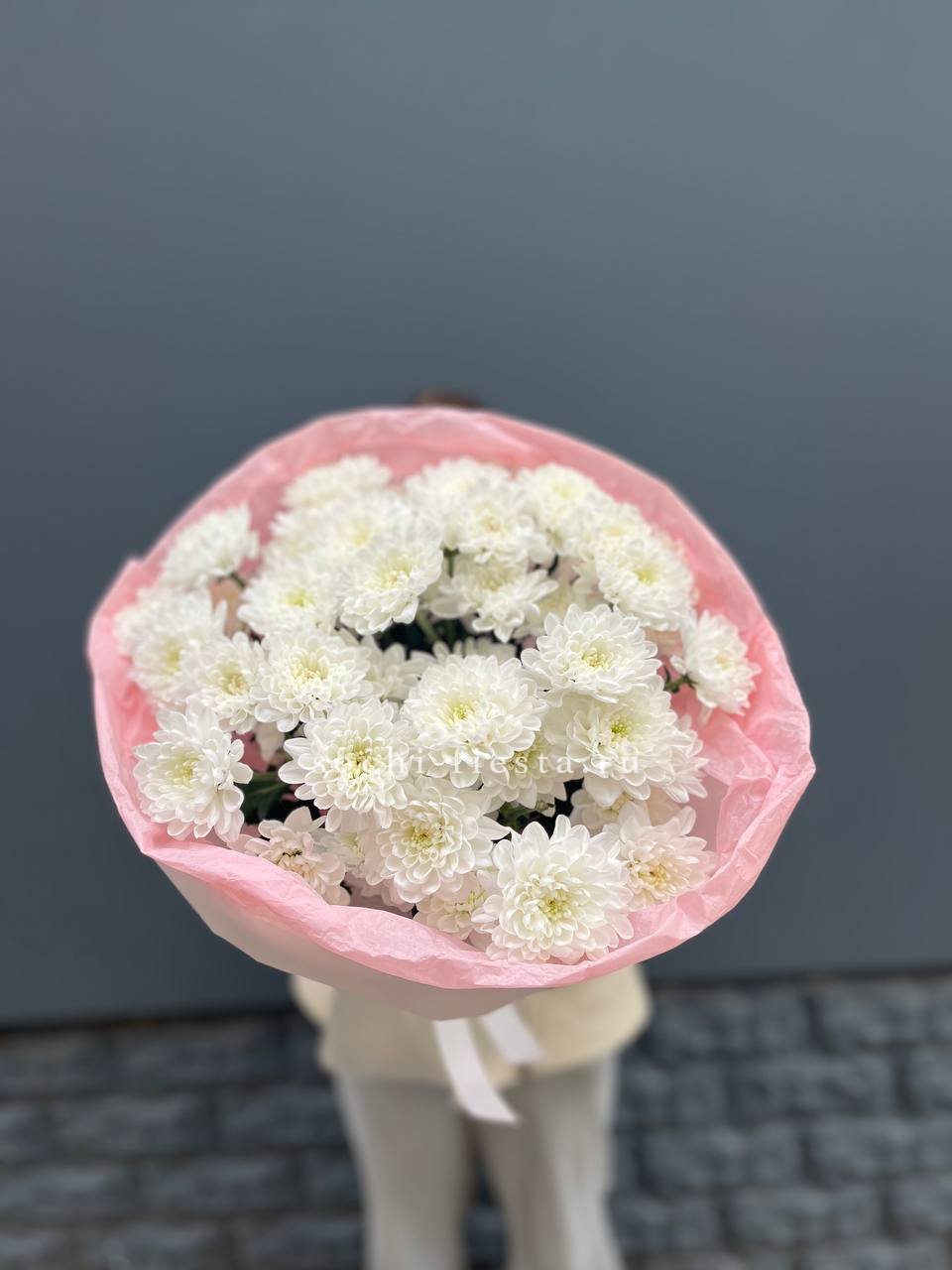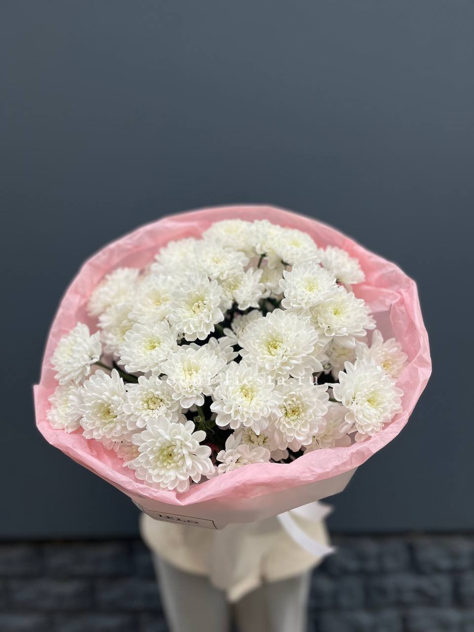 хризантема кустовая - 17 веток, тишью, дизайнерская упаковка, лента.