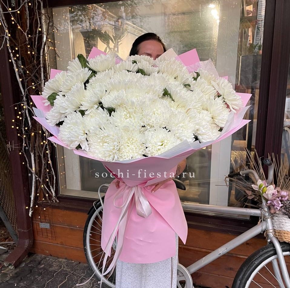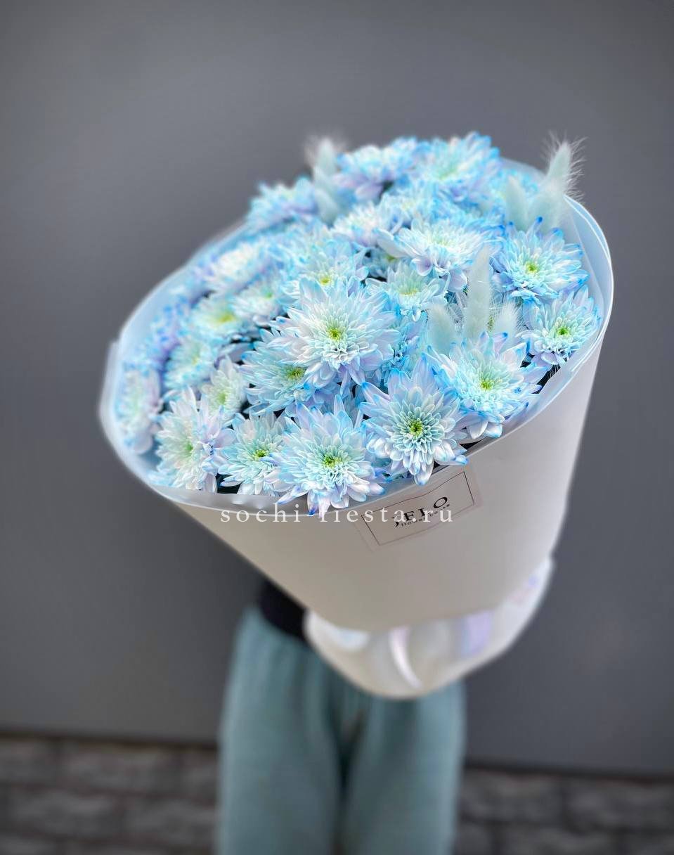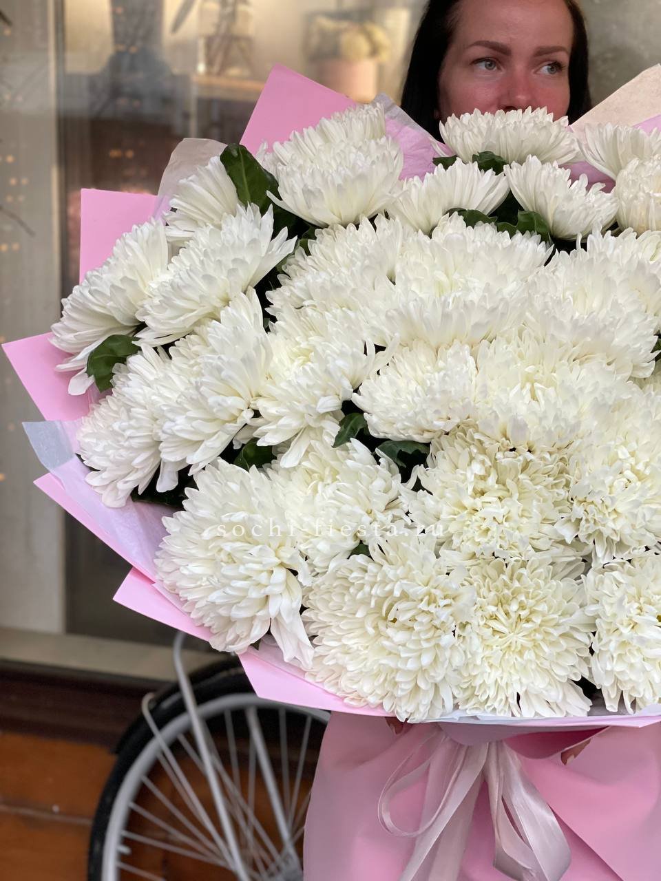 хризантема кустовая - 17 веток, тишью, дизайнерская упаковка, лента.