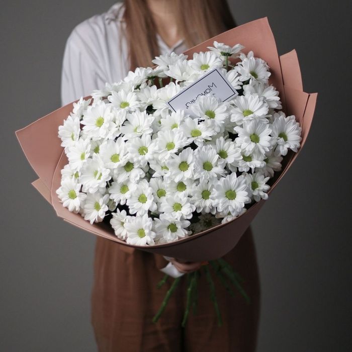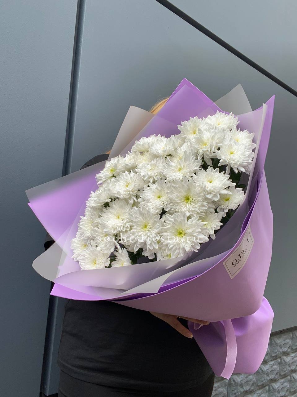 хризантема кустовая - 19 веток, лента, дизайнерская пленка.
