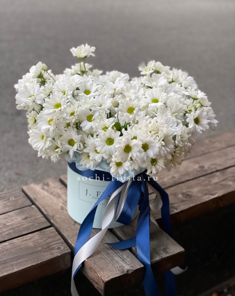 Белоснежные кустовые хризантемы раскрываются мягкими шарами соцветий. Чистота линий и спокойный ритм бутонов создают ощущение воздуха и света.