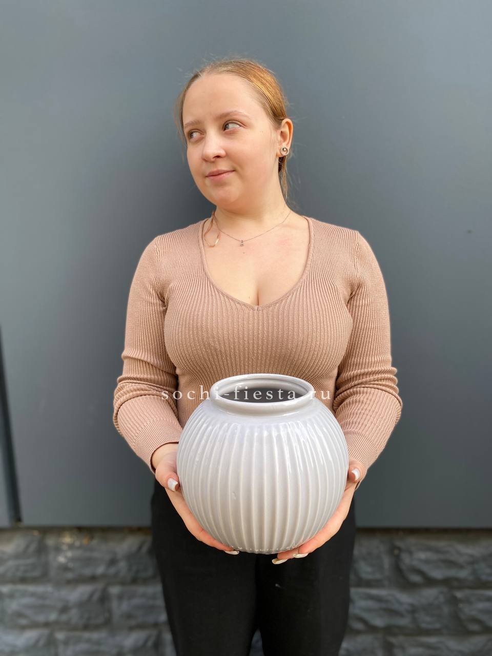 Глянцевая зеркальная поверхность отражает свет и пространство вокруг. Хромированный шар добавляет букету современное звучание и графичность.