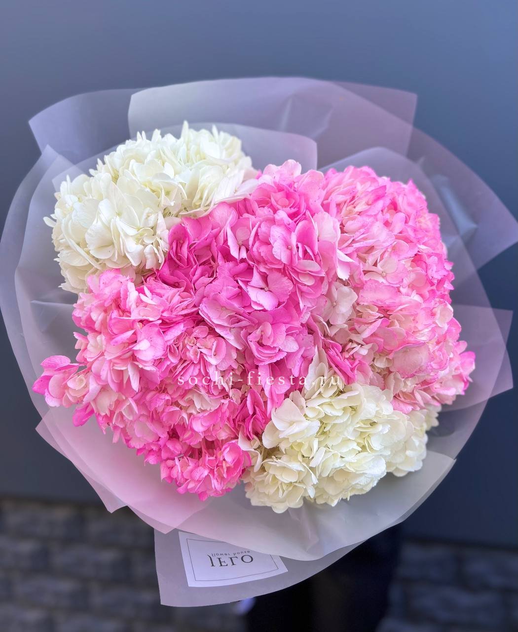 Масштабная композиция объединяет хризантемы, герберы, розы, антиринум и гортензию в плотную структуру с яркими акцентами. Диантус и бомбастик добавляют объем, а озотамус создает текстурные переходы между крупными соцветиями.