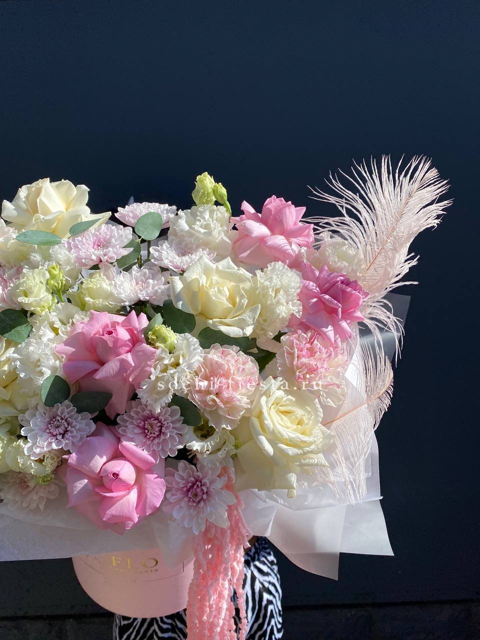 бокс 20D, белая французская роза, эустома, эвкалипт.