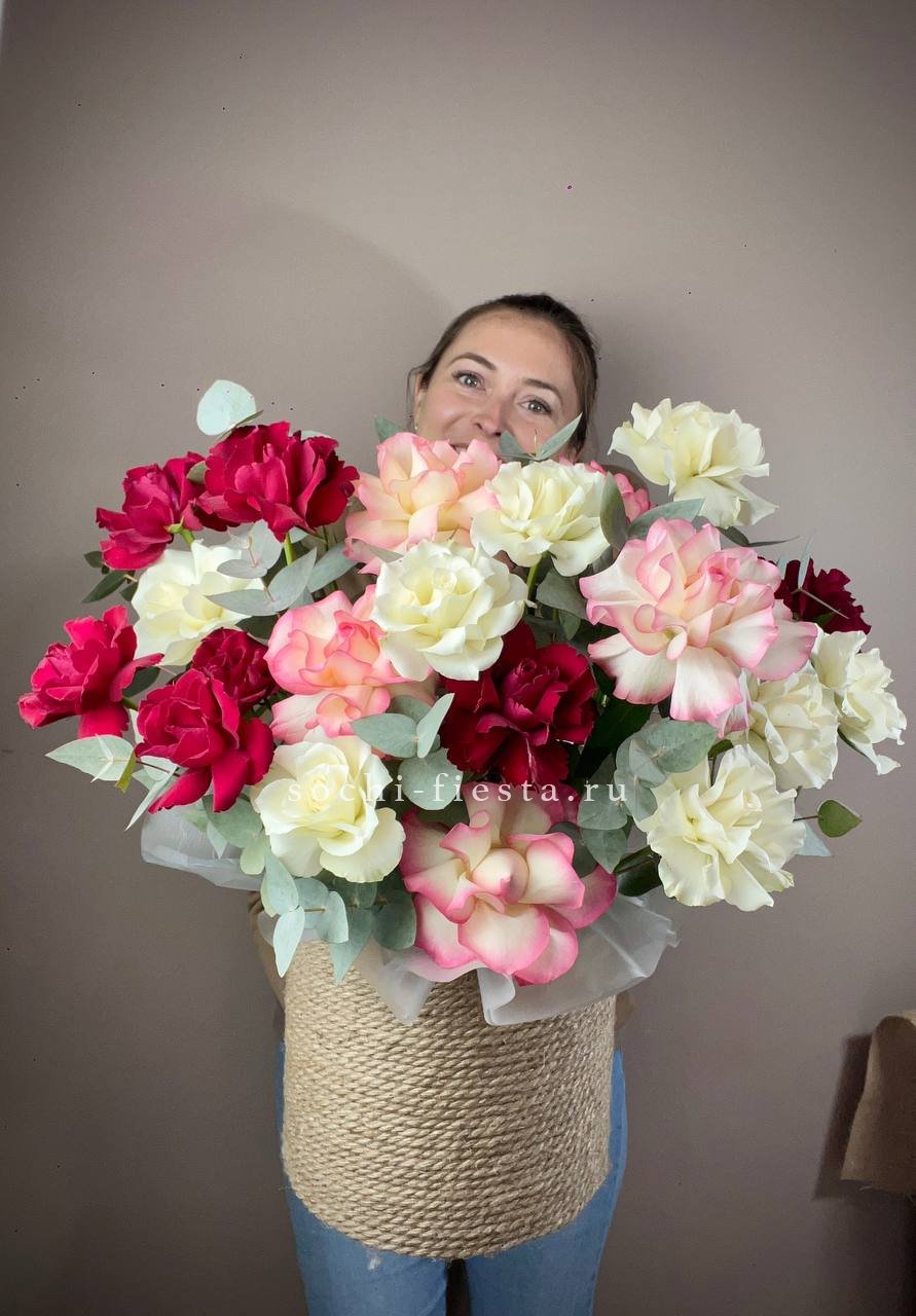 Для заказа товара "35 французских роз микс в джутовом боксе" с доставкой в Волжские нажмите в корзину