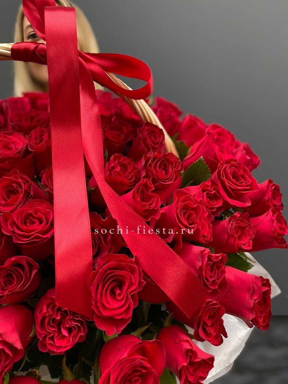 351 красная роза, оформление корзину на выбор.