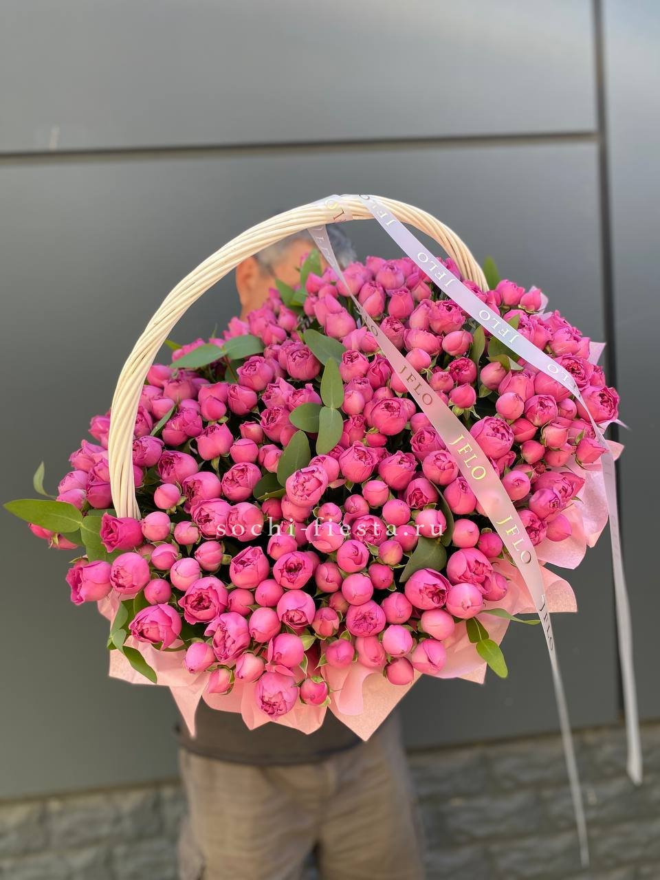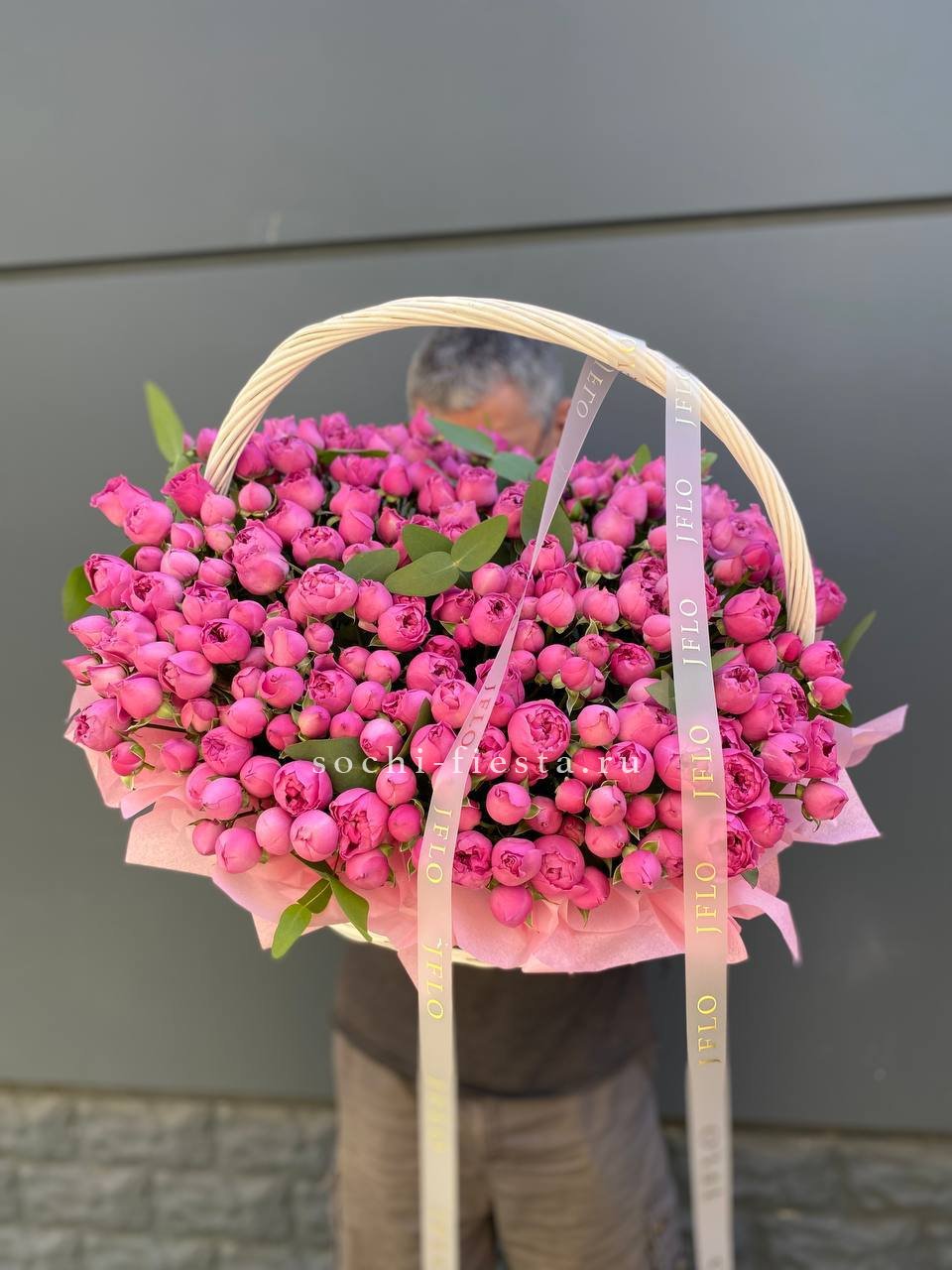 пионы, кустовая пионовидная роза, маттиола, пиафлор, плетеный бокс или корзина D40 В низкий сезон (с сентября - по апрель) пионы, находящиеся в составе данной композиции, могут быть заменены на пионовидную розу по согласованию с заказчиком.