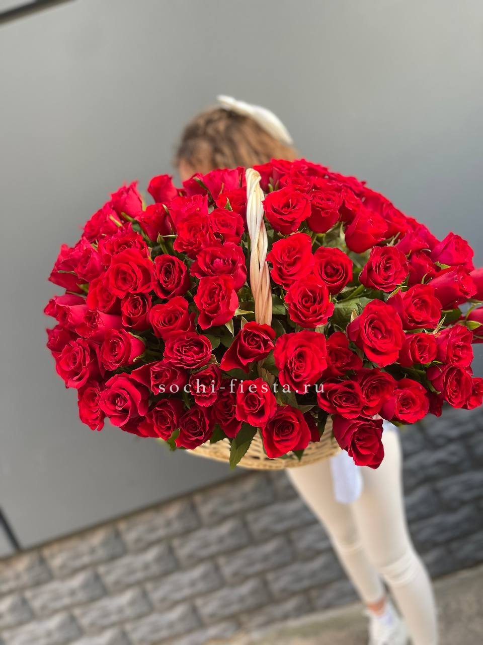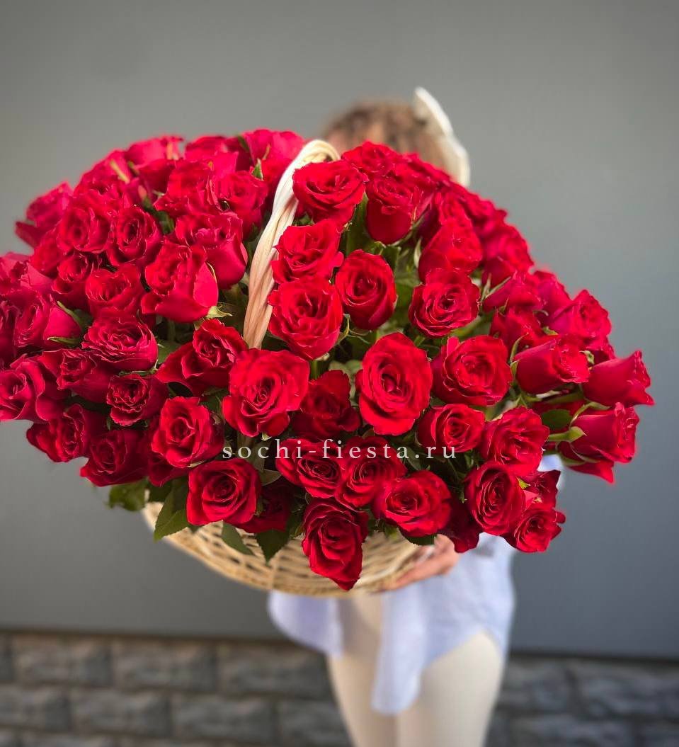 Корзина собрана плотно, каждый цветок находит своё место в общей композиции.