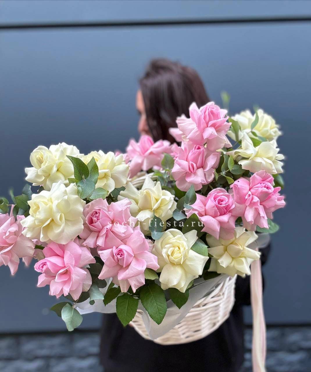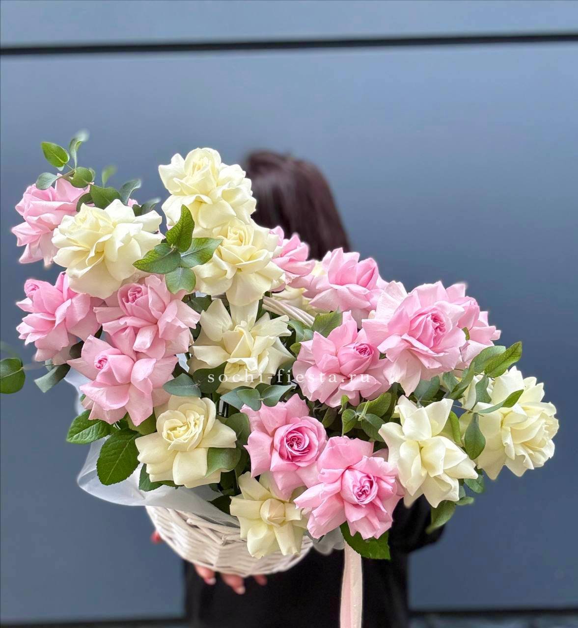 151 белая роза в корзине