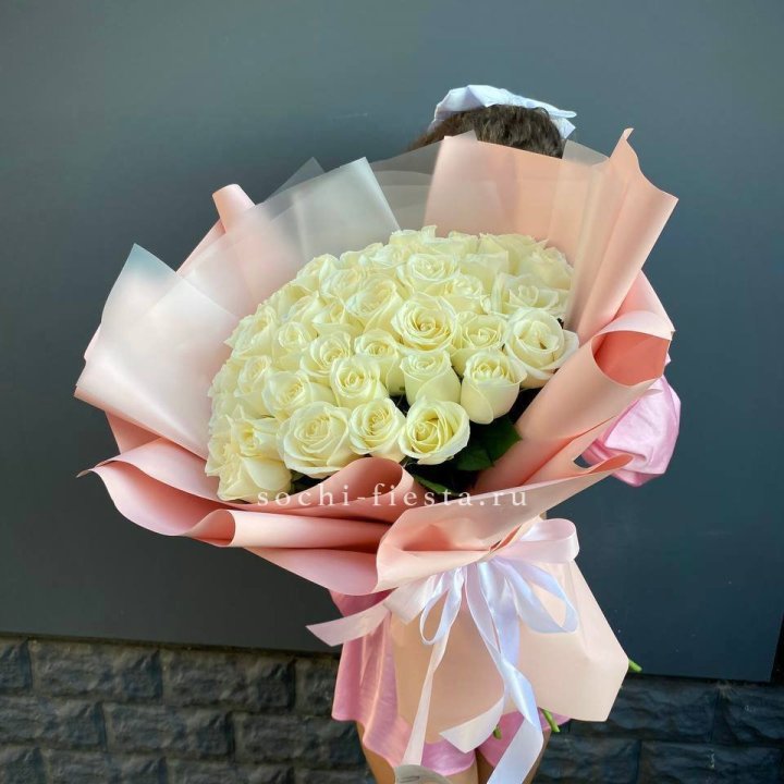 букет из 51 розы с упаковкой в крафтовую бумагу для местного заказа
