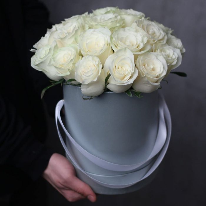 Семь белых бутонов в лаконичной обёртке. Компактная форма и чистота линий делают букет удобным для любого интерьера.