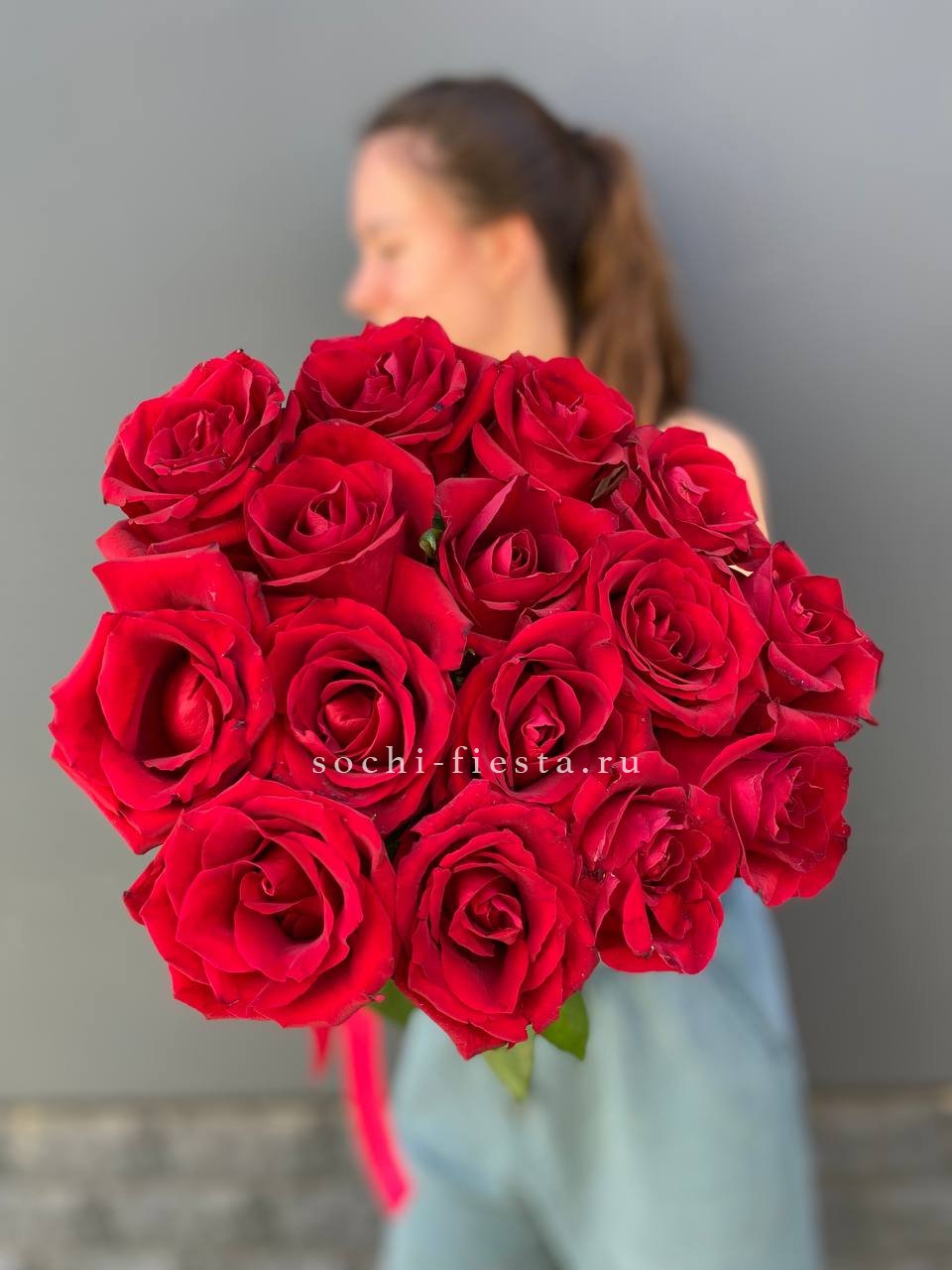 15 красных роз под ленту