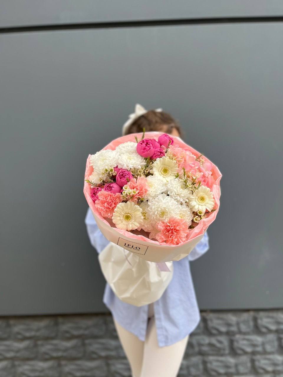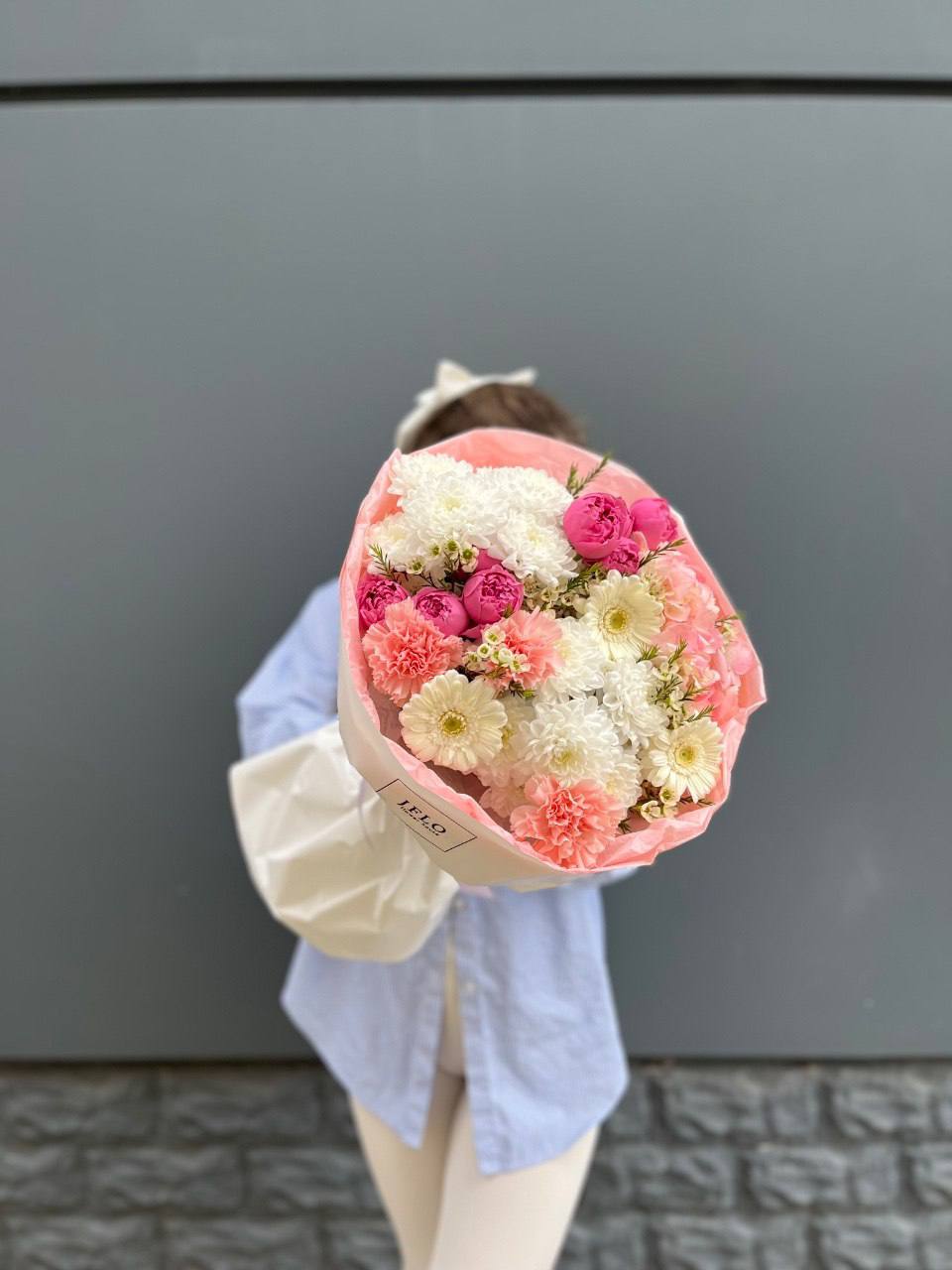 джумилия, хризантема, антиринум, диантус, мисти баблс, упаковка.