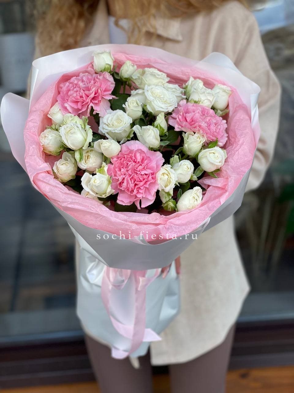 Для заказа товара " Букет хризантем и диантусов "Воздушный"" с доставкой в Волжские нажмите в корзину
