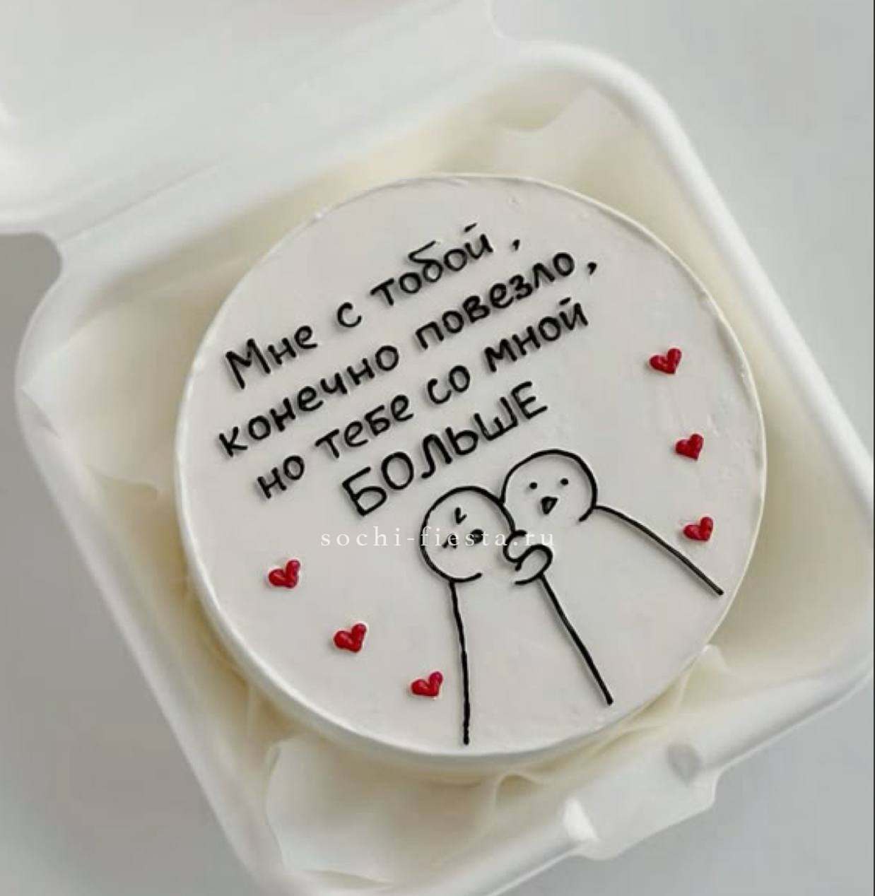 Дизайнерский бенто-торт с романтичной надписью и воздушным кремом. Компактная форма позволяет разместить его даже на небольшом столике. На выбор клубничный пломбир или шоколадный трюфель.