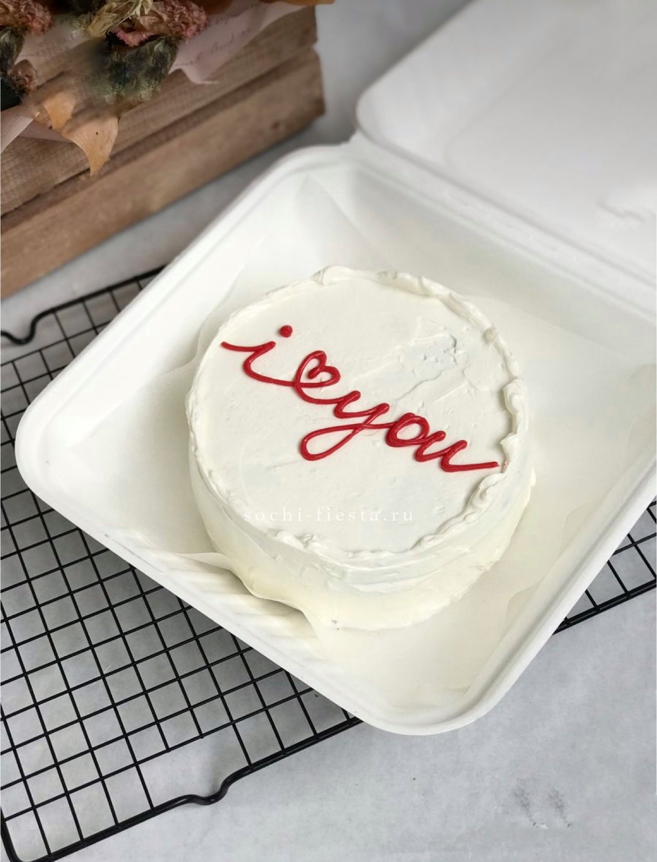 Миниатюрный торт с романтичным декором и насыщенной кремовой основой. Яркие акценты и надпись делают его центром внимания на столе. Клубничный или шоколадный вкус на выбор.