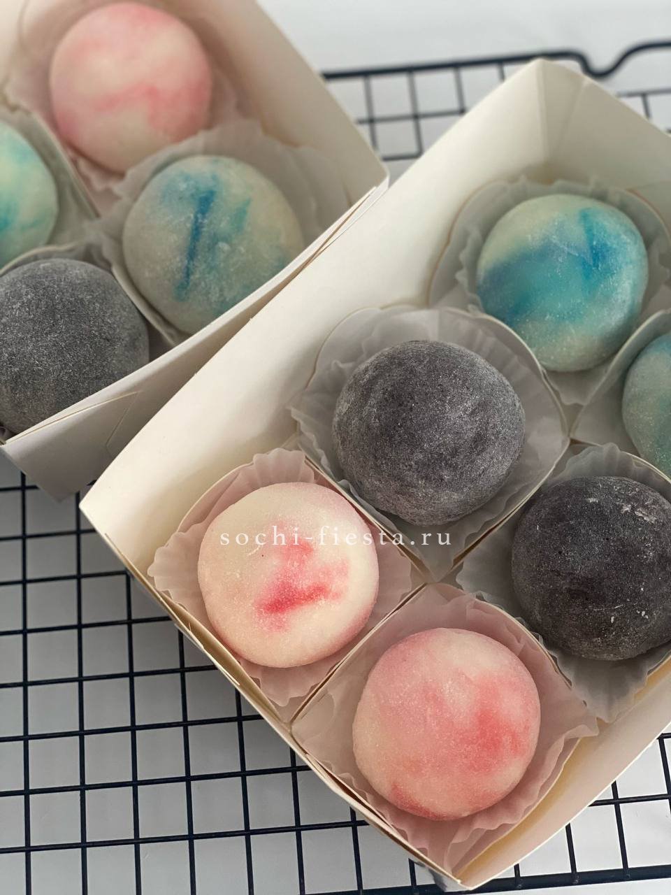 вкуснейший японский десерт- 6 шт. в наборе. Упаковка и декор включены в стоимость. Можно заказать только дополнительно к букету или шарам.