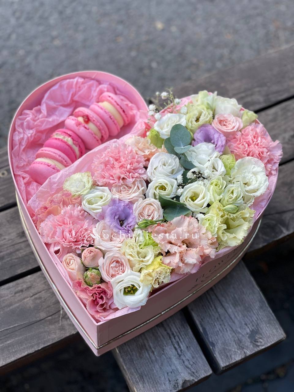 Воздушные зефирные бутоны собраны в просторной коробке, где каждый слой открывает новую палитру оттенков. Объемная композиция играет цветом и формой, создавая ощущение цветущего сада в сладком формате.
